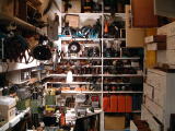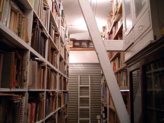 ガレージを改造した書庫、科学関連の書籍がおよそ2万冊。ぎっしり特に歴史的なもが多いのに驚いた。 |