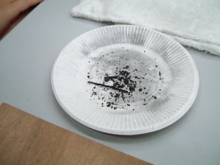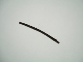 ステンレスのチューブに炭素粉末と一緒につめて、ガスバーナーで7,8分焼いた竹ひごフィラメント |