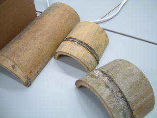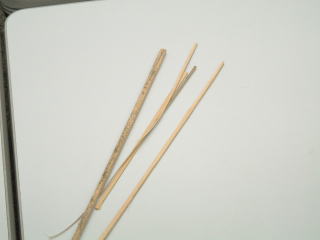 竹ひごフィラメント加工中、表面の硬い部分を使用する。 |