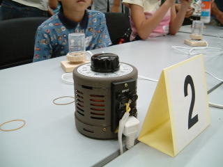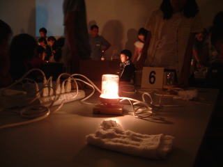 科学技術分野への社会貢献活動の一環として、4年生以上の小学生を対象とした科学実験教室「第8回アジレント・テクノロジー こども科学実験教室」が、本社・八王子事業所で開催されました。 エジソンが使ったのと同じ京都の竹でフィラメントを作り、暗くした部屋の中で電圧をあげて点灯させる実験を行なった。こだわりが違う! |